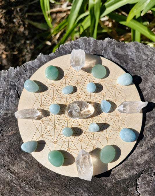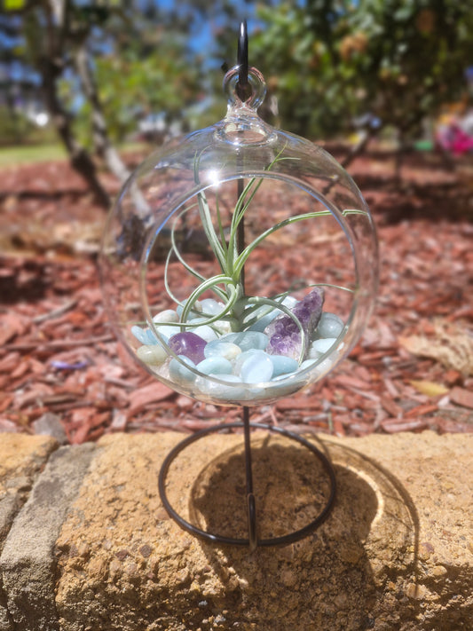 Aquamarine +Amethyst +Clear Quartz Crystal Tillandsias Terrarium