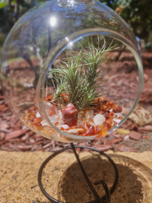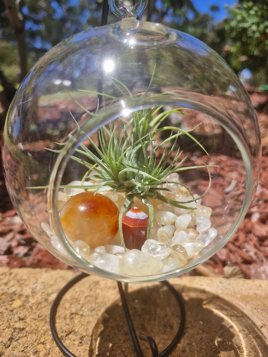 Carnelian, Citrine + Clear Quartz Crystal + Tillandsias Terrarium